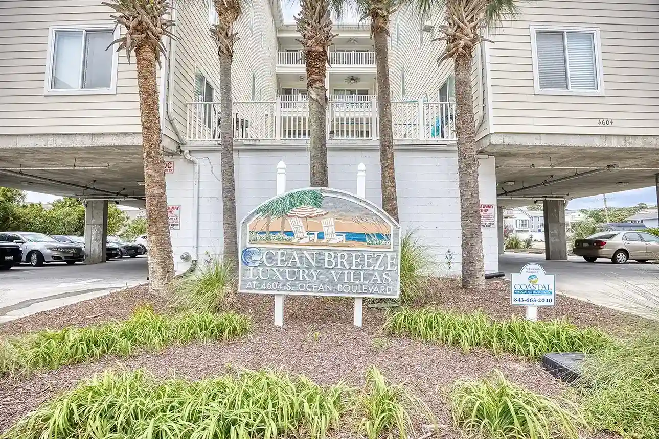 Welcome to Ocean Breeze Luxury Villas located at 4604 South Ocean Blvd in the Windy Hill Beach Section of North Myrtle Beach SC. . This 1700 square foot open floorplan will provide plenty of room for your large family. The residence features an open floor plan with living room, dining area, full kitchen, 3 bedrooms each with it's own full bath, ocean views from the balcony, and less than 150 feet from public ocean access.