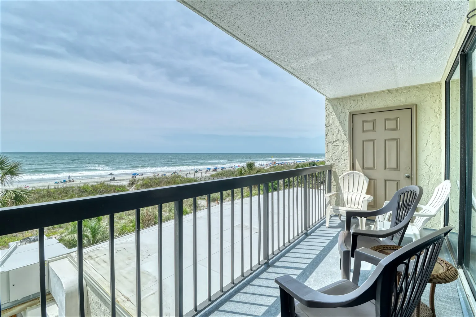 Located on the 3rd floor of a 10 story building with direct views of the beach